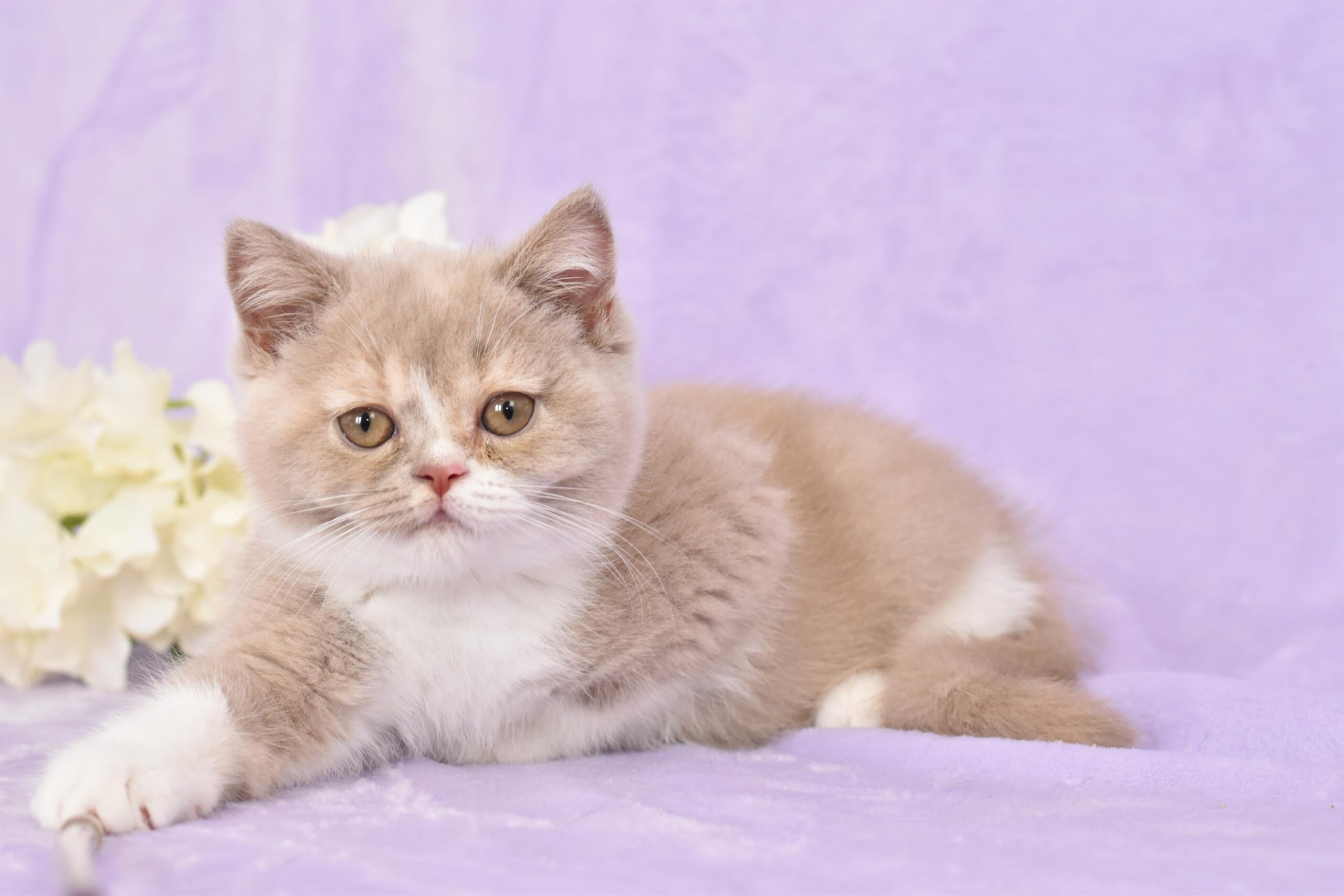 Hi there, my name is Lilac Tortoise—and I’ve been waiting just for you. I’m a 3 months old male British Shorthair kitten, wrapped in a plush lilac tortoise bicolor coat and sparkling with soft green eyes that follow your every move with curiosity and affection. I might be small now, but soon I’ll grow into an elegant companion,